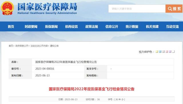 国度医疗保险局公布2022年度医保基金漂荡查抄情况